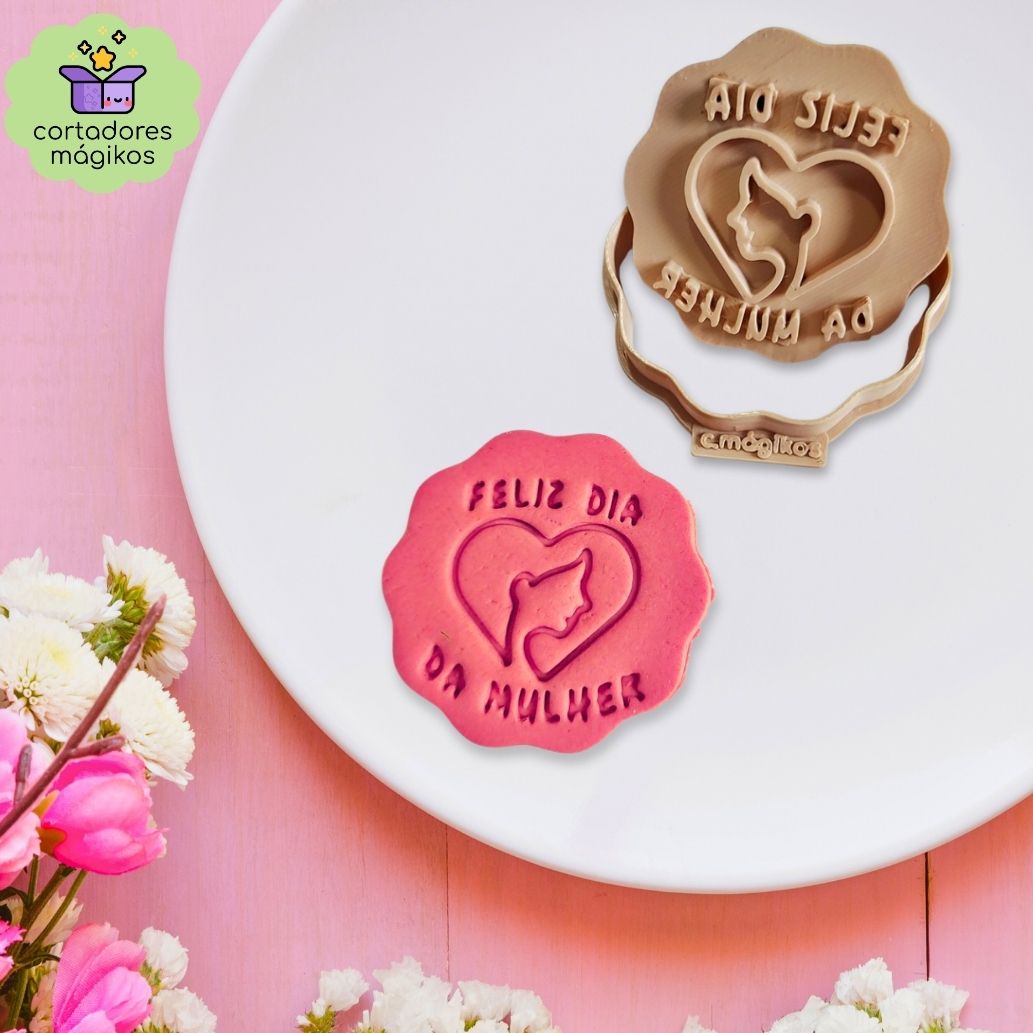 Cortador de biscoitos para o Dia da Mulher 8 de Março com puxador incluso reforçado rosto e coração