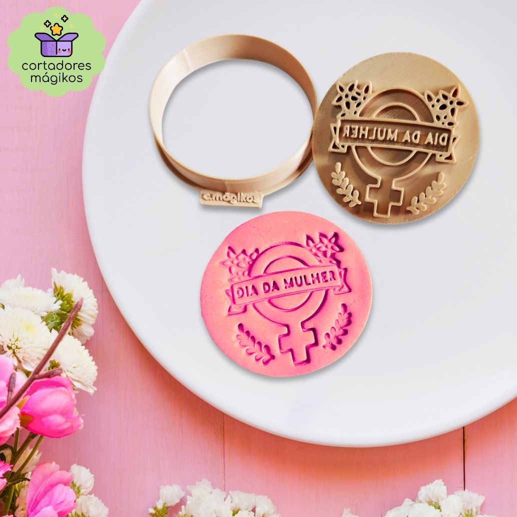 Cortador e Carimbo Símbolo feminino Dia da Mulher 8 de Março para biscoitos ou artesanato 6cm